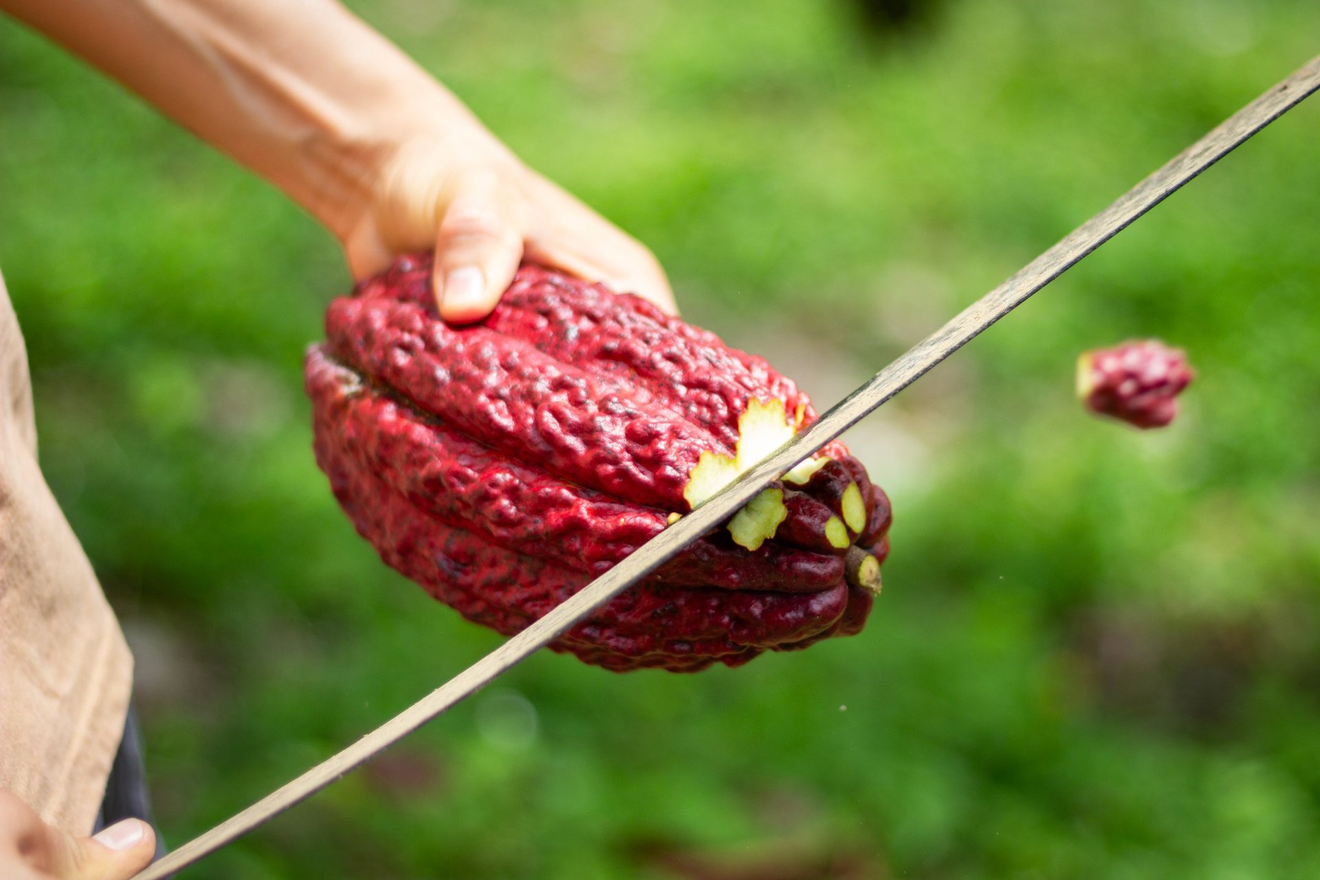 Identificaremos una mazorca madura, participaremos en su cosecha y probaremos el mucílago, una pulpa de sabor frutal que revela una cara inesperada del cacao.
